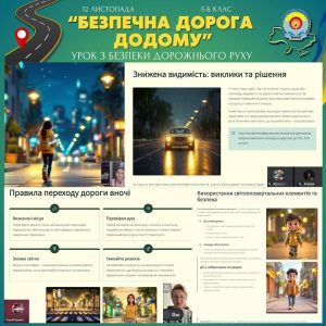 Сьогодні, 12 листопада, у школі “Світоч” для учнів 5-Б класу пройшов життєво важливий урок на тему “Безпечна дорога додому”, де діти закріпили основні правила поведінки на дорозі.