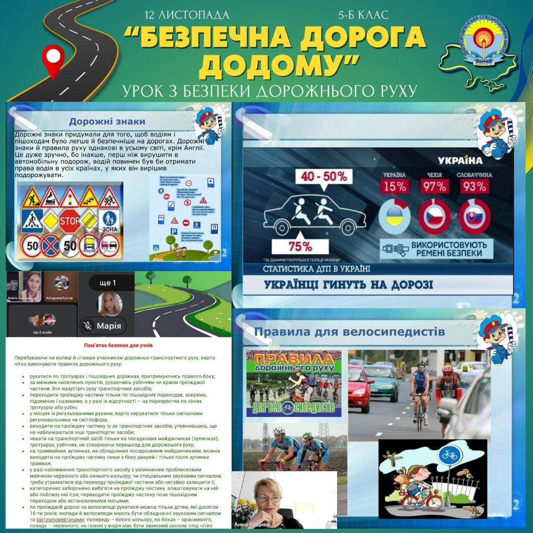 Це була справжня інтерактивна робота: п’ятикласники переглянули відео “Правила дорожнього руху для дітей і дорослих”, активно попрацювали із презентацією “Безпека на дорогах”, перевірили знання у вікторині “Безпека життєдіяльності” та закріпили все це творчо, намалювавши малюнки.