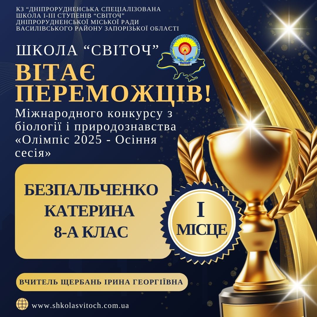 -Безпальченко Катерина (8-А клас) — Диплом І ступеня (95%)!