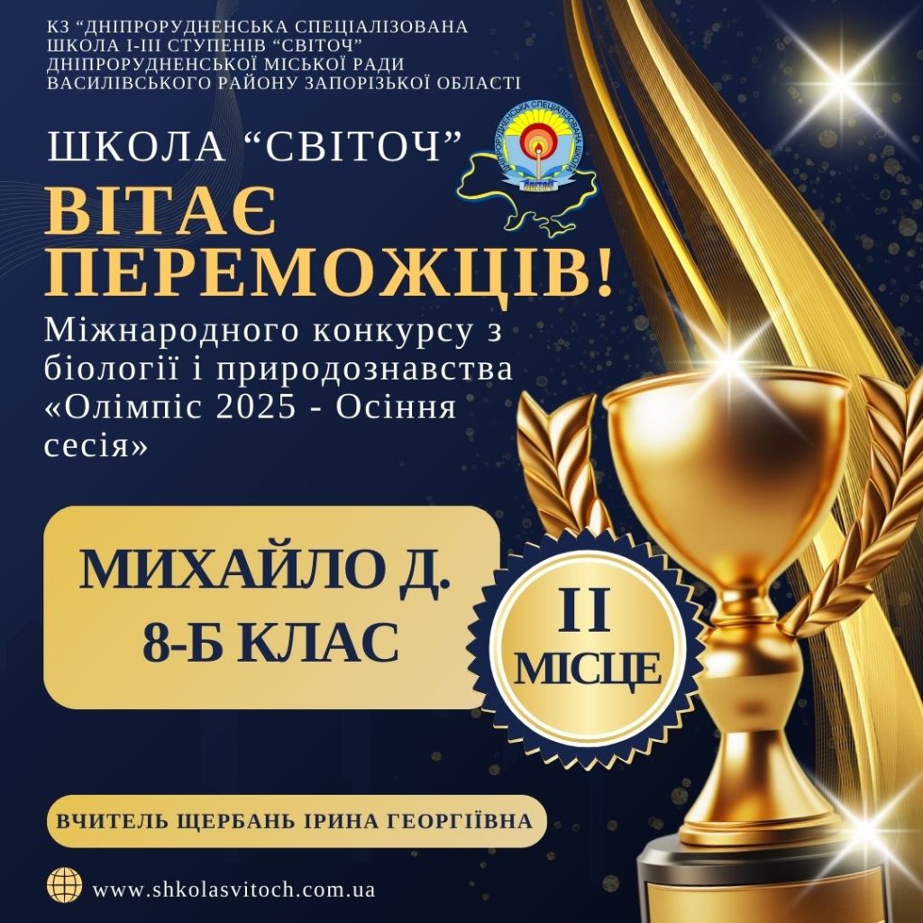 Пишаємося результатами наших учнів у Міжнародному конкурсі з біології та природознавства «Олімпіс 2025 – Осіння сесія»!