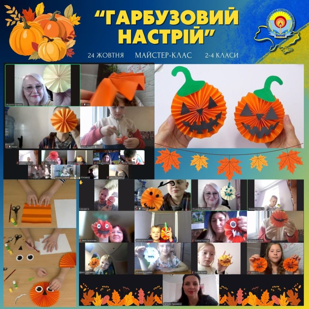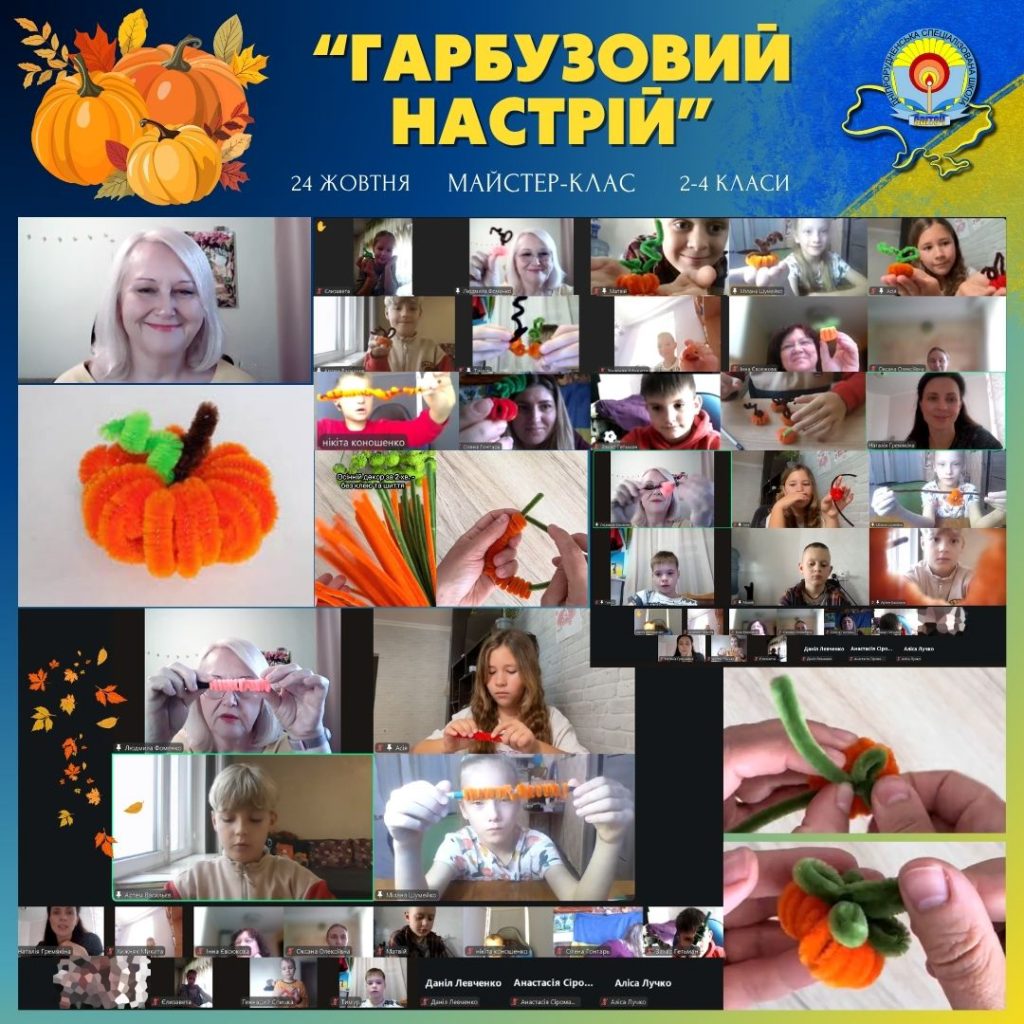 До нас на захопливий майстер-клас завітала справжня чарівниця з ЦДЮТ, керівниця гуртка “Сувенір” – пані Людмила Фоменко! Вона поділилася з дітьми секретами, як із простого пухнастого дроту та кольорового паперу створити власні неповторні гарбузики.