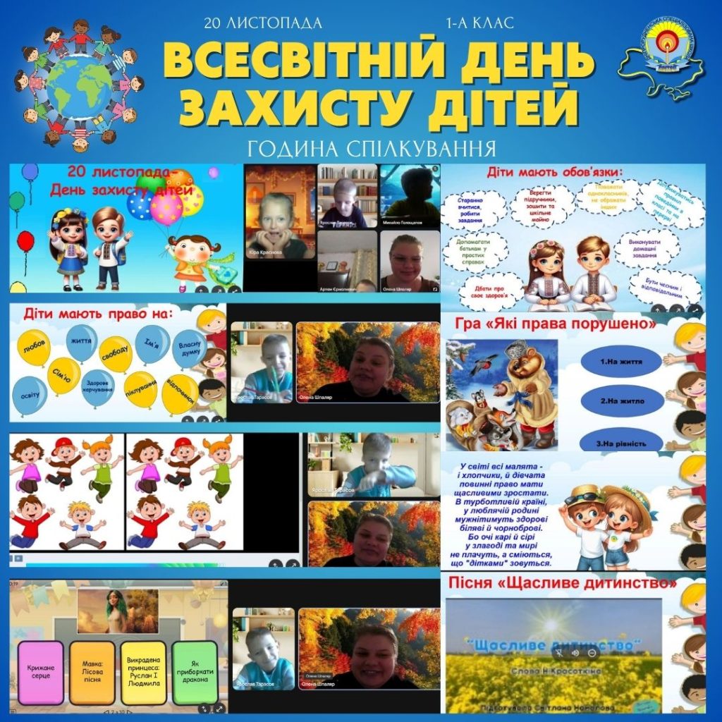 Сьогодні, 20 листопада, учні 1-А класу провели теплу та змістовну годину спілкування, присвячену Всесвітньому Дню захисту дітей! Це був важливий урок прав та відповідальності.