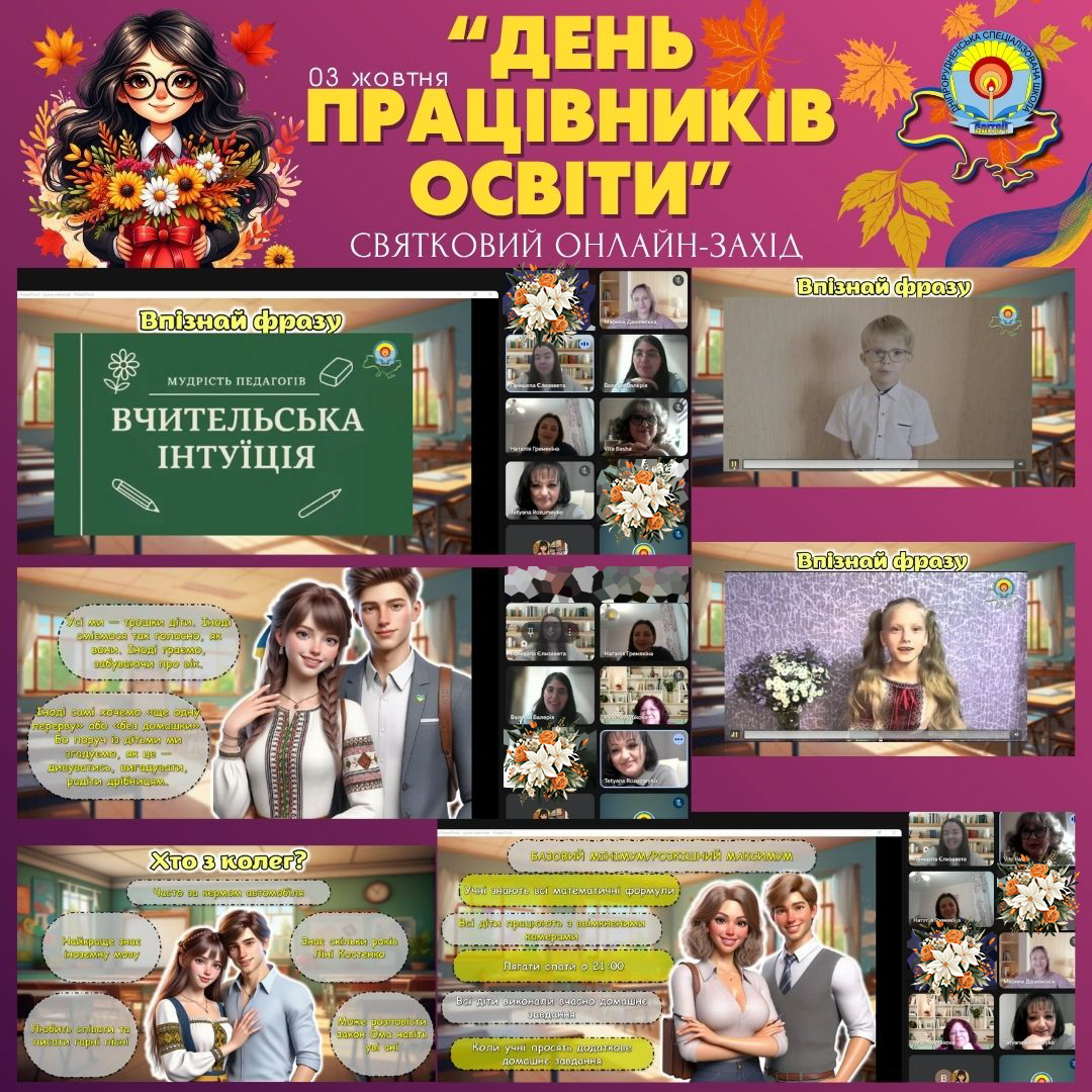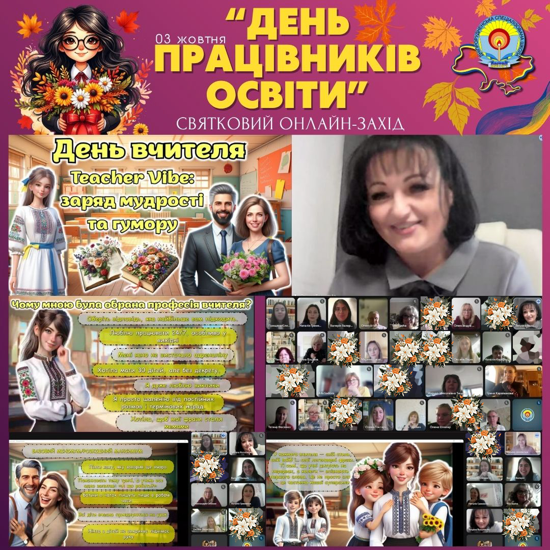 А після уроків велика шкільна родина зібралася на затишну онлайн-зустріч. Зворушливі слова директора Розумейко Тетяни Миколаївни задали настрій заходу — по-домашньому теплий та щирий.