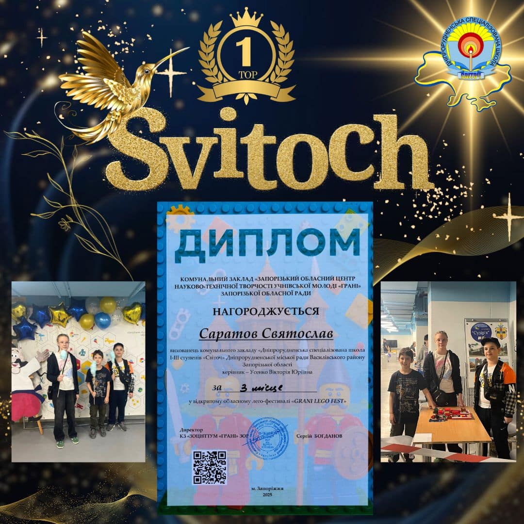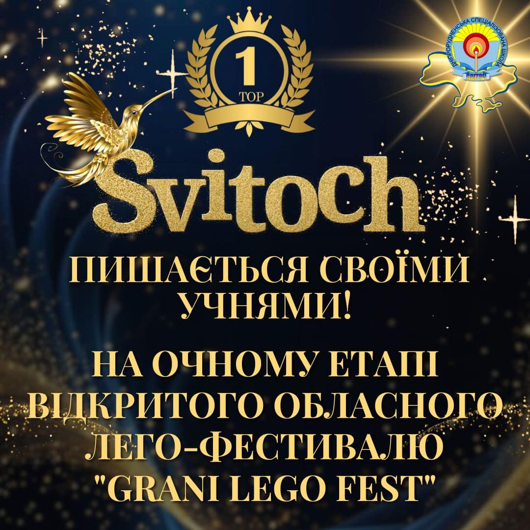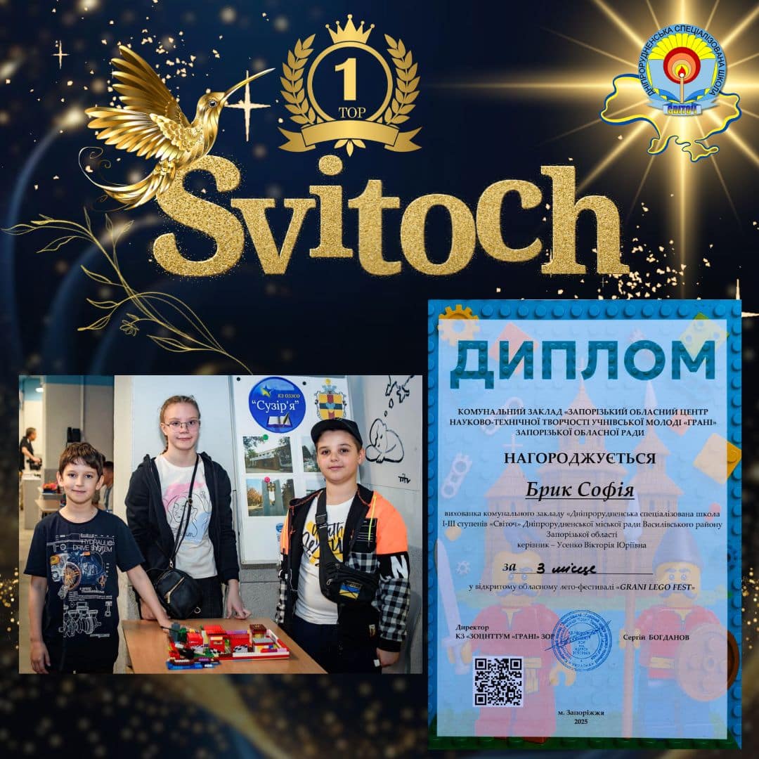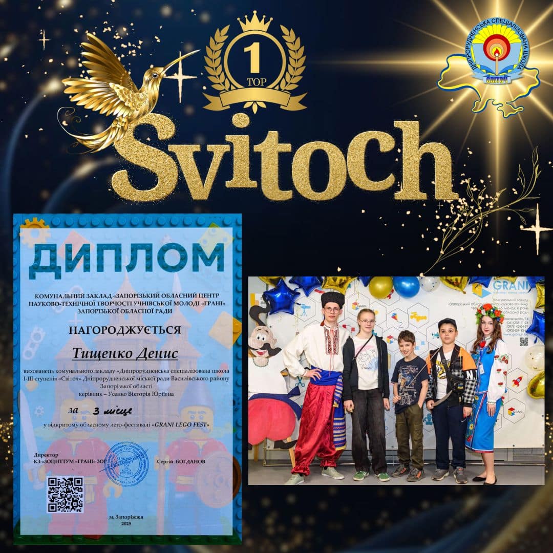 26 квітня команда школи “Світоч” яскраво представила нашу громаду на очному етапі Відкритого обласного лего-фестивалю “GRANI LEGO FEST”, що відбувся у славному місті Запоріжжя.