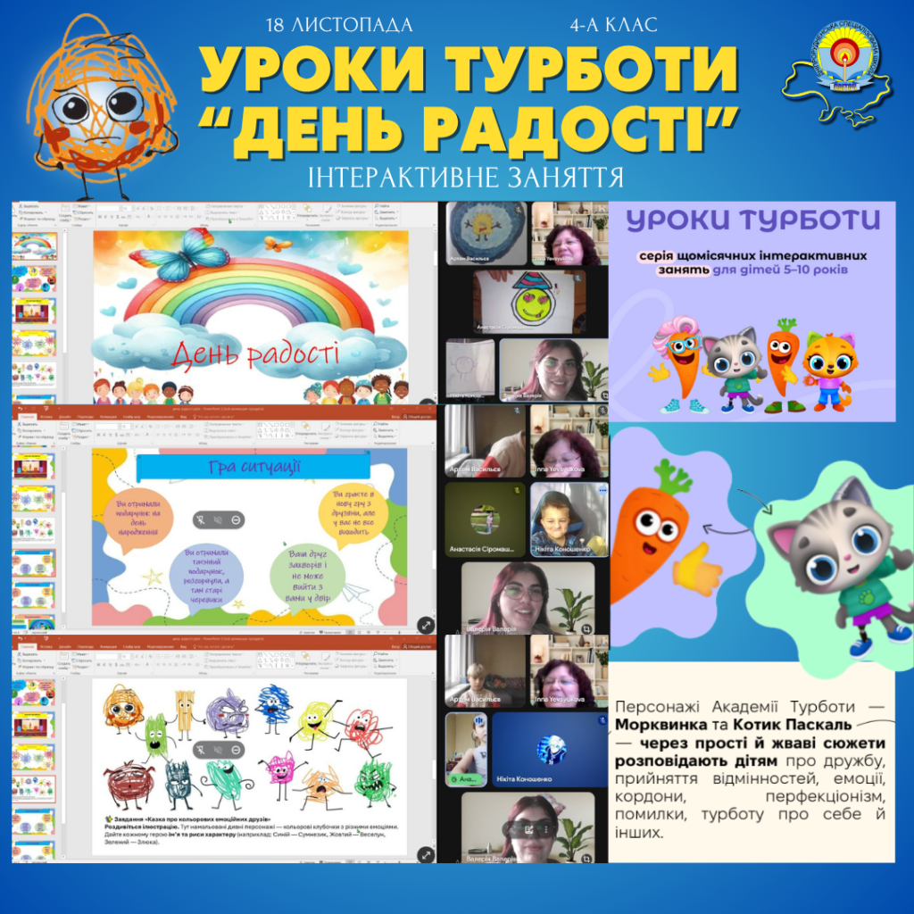 Школа “Світоч”. Сьогодні практичний психолог пані Валерія провела інтерактивне заняття «Уроки турботи» для учнів 4-А класу. Заняття покликані розвивати емпатію та щоденну турботу про психічне здоров’я.