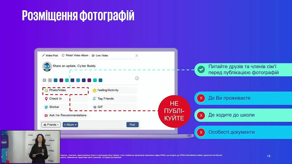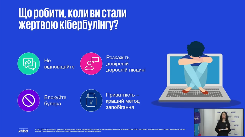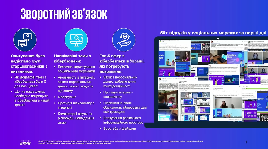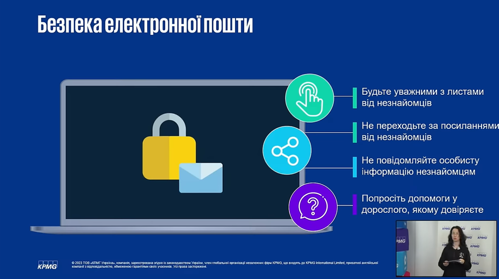Освітній День кібербезпеки в межах Міжнародного місяця обізнаності з кібербезпеки, що традиційно проходить у жовтні. Разом з KPMG в Україні (KPMG Ukraine) спільно з Державною службою якості освіти України отримуємо нові знання та цінні поради з безпечного користування інтернетом, удосконалюємо цифрову грамотність та ще раз згадуємо правила поведінки у соцмережах і онлайн-іграх.