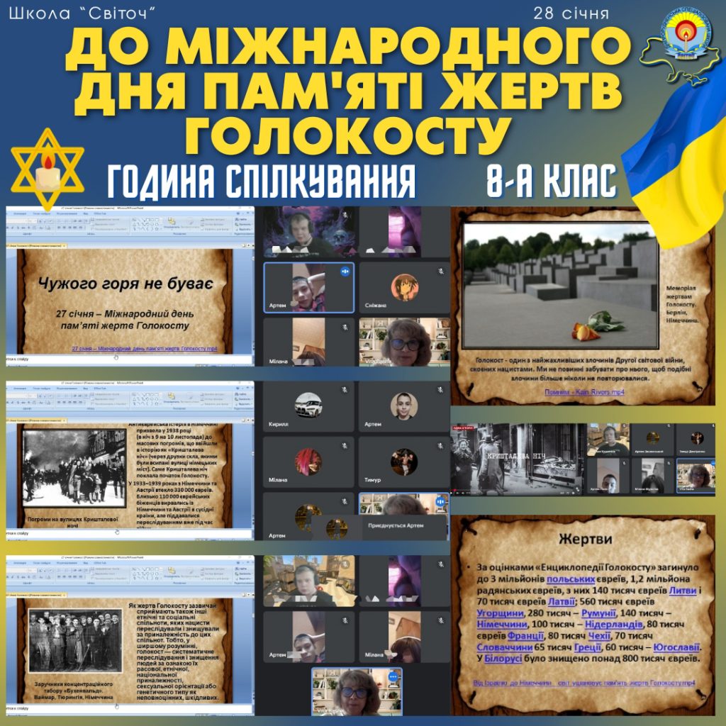 “Чужого горя не буває”: Година спілкування у 8-А класі до Міжнародного дня пам’яті жертв Голокосту